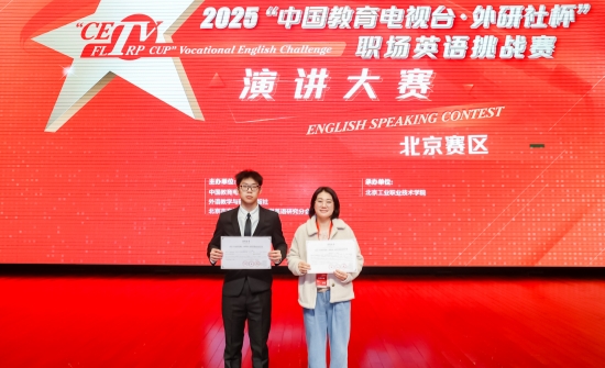 近日,2025“中国教育电视台·外研社杯”职场英语挑战赛演讲与写作大赛(北京赛区)圆满落幕。金年会|jinnianhui职业学院首次选派4名学生参赛,在演讲与写作两个赛项中均表现优异,共摘得二等奖2项、三等奖2项,充分展现了学院学子良好的英语语言应用能力、出色的职业素养与昂扬的精神风貌。